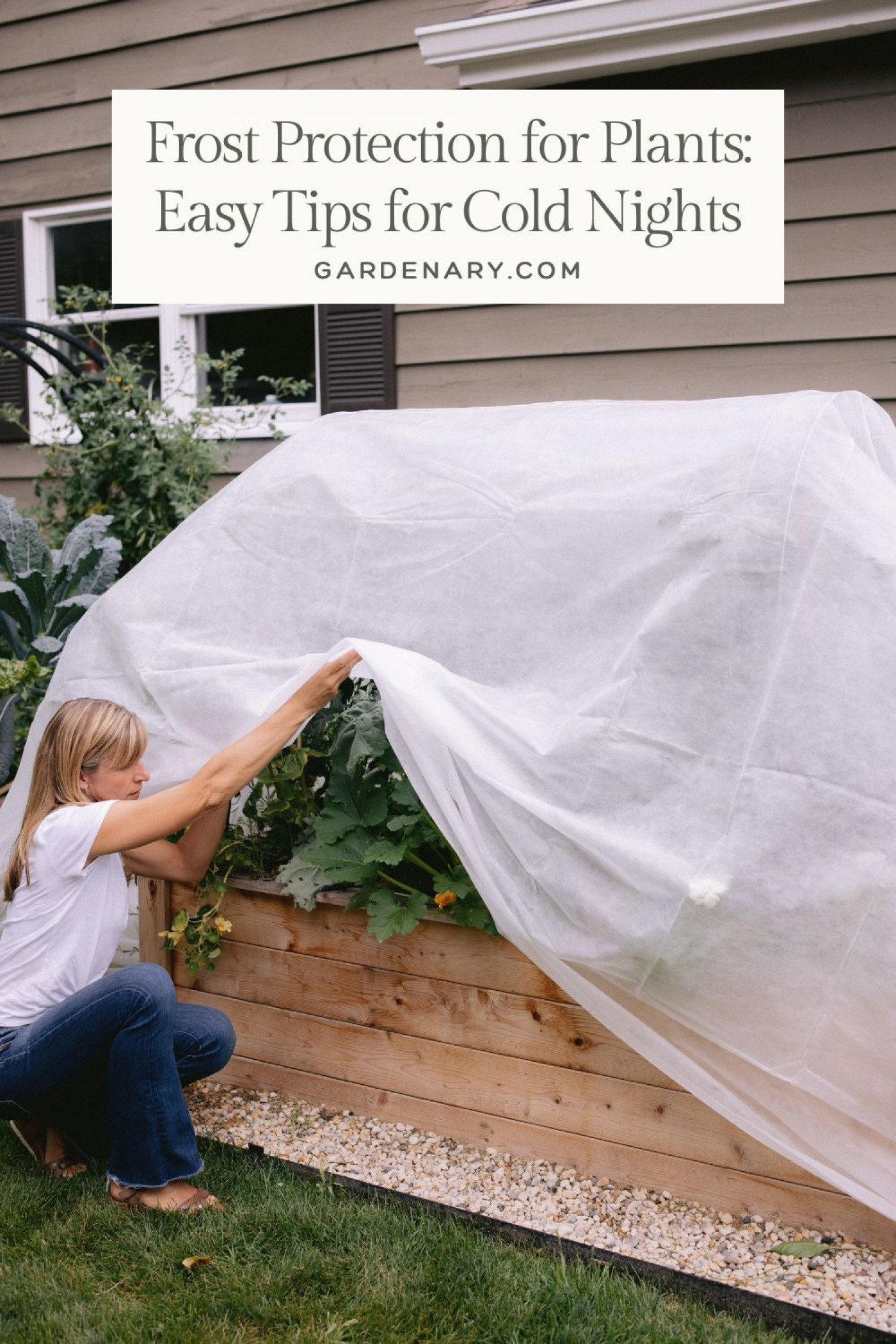 - Cover tender plants with breathable fabric that reaches the ground.