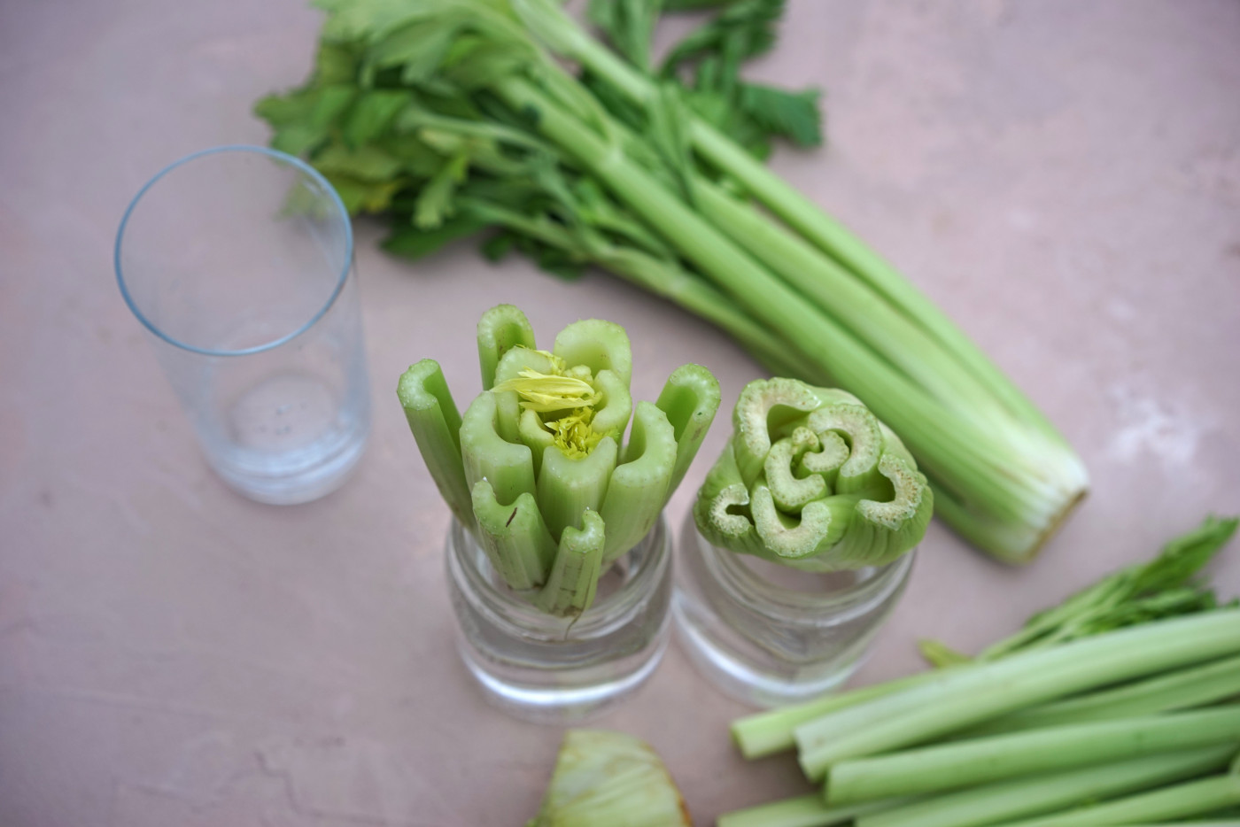 To grow celery in water, start with the base of a healthy celery plant. After harvesting the stalks, leave about 2 to 3 inches of the base intact, making sure the crown (where the stalks connect) is undamaged. Place this base cut-side up in a shallow jar or bowl with just enough water to cover the bottom. The water should touch the base but not submerge the entire crown.