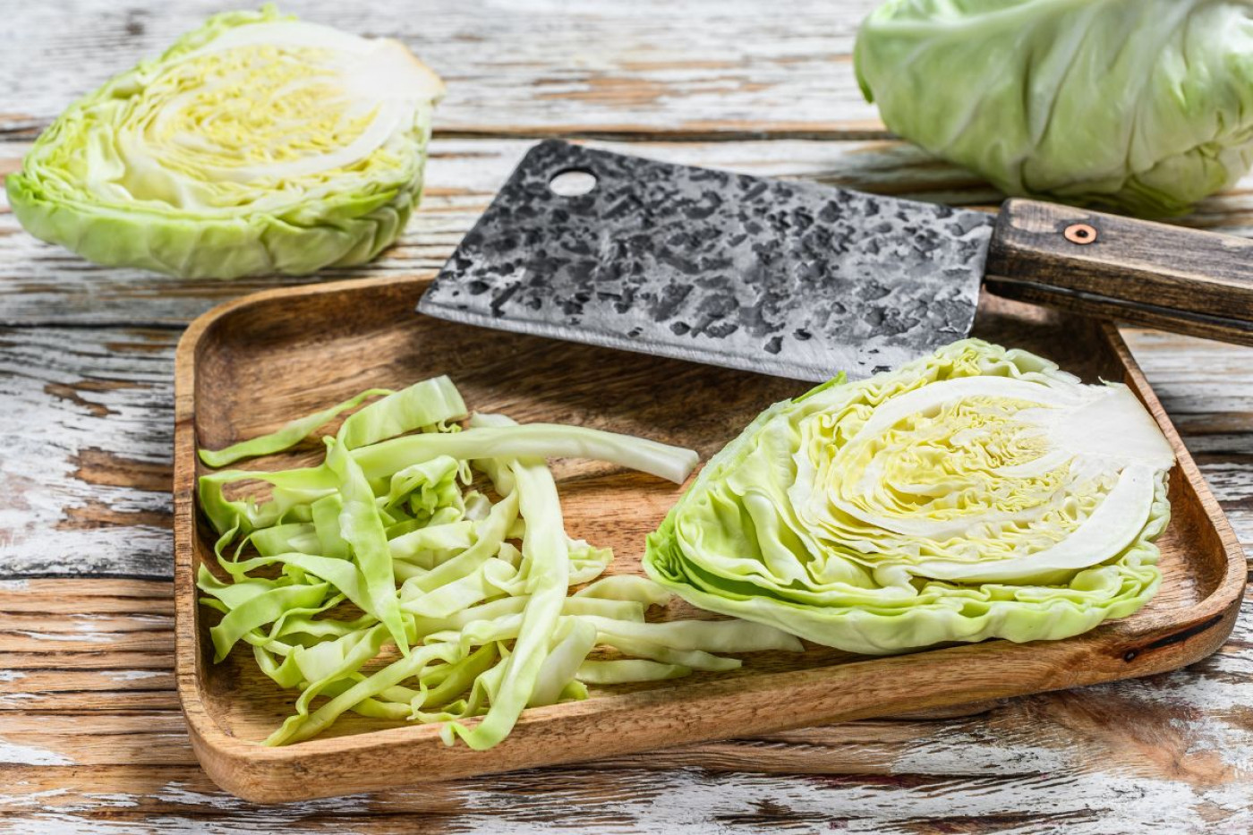 - Savoy cabbage – Crinkled leaves make shredding a little trickier, but it gives a tender kraut with a delicate flavor.