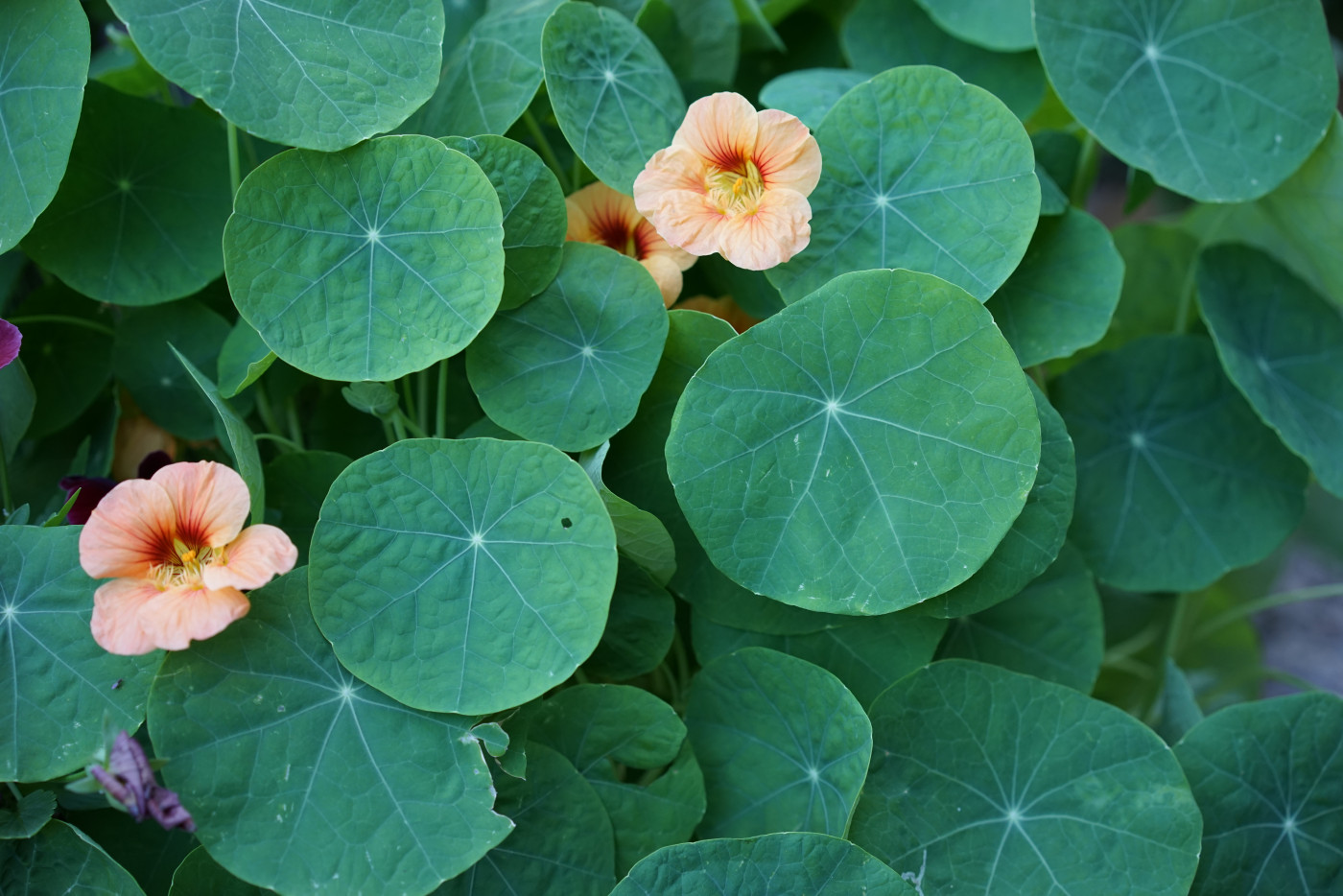 When grown vertically, nasturtiums take up less ground space while still providing abundant flowers and leaves.