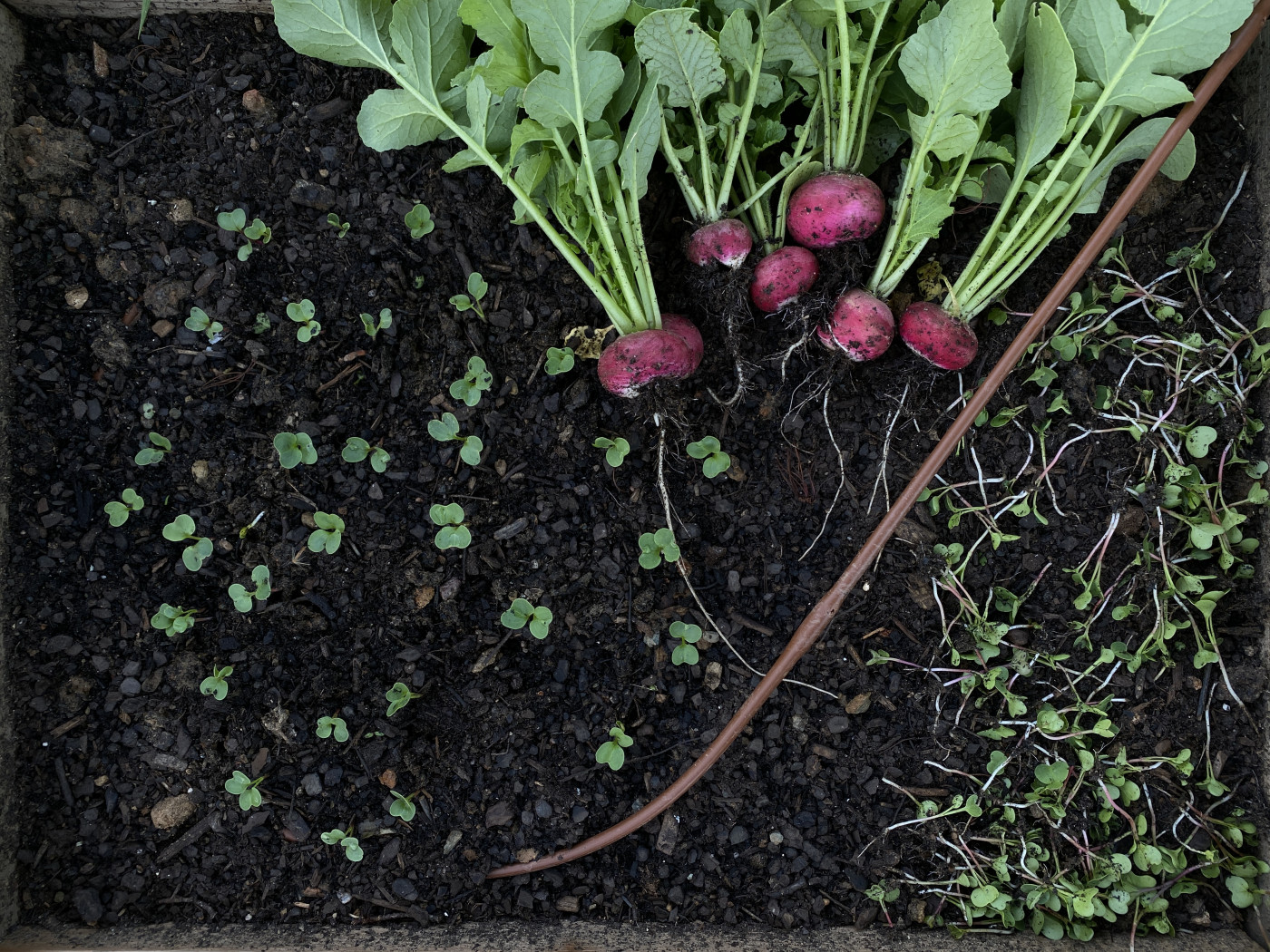 The only drawback, compared to arugula, is that radishes are one-and-done. Once you harvest the root, the plant is finished. You can, of course, plant another round, but you won’t get the continuous harvest that arugula provides. That’s why I always give radishes the runner-up award. They’re fun, fast, and rewarding, but they don’t give back quite as much as arugula does.