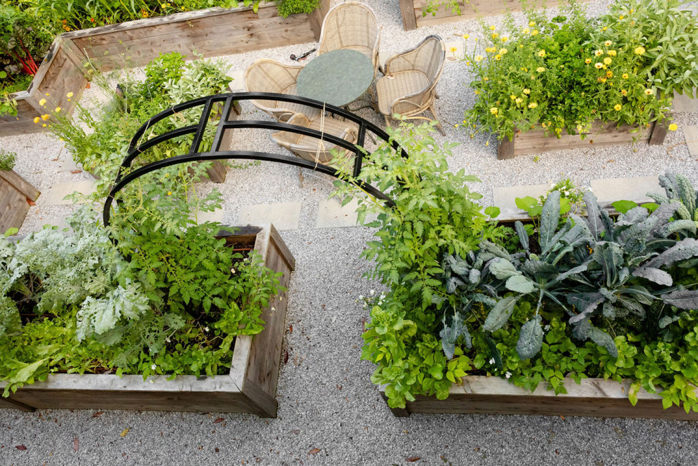 Trellising and raised beds are a natural match because they solve two problems at once: soil quality and space. Raised beds already give you better drainage and healthier soil, and when you add trellises, you unlock the vertical space above the bed as well. Instead of plants spreading outward and competing for room, they grow upward, which keeps beds tidy and organized while allowing you to fit more plants into the same footprint.