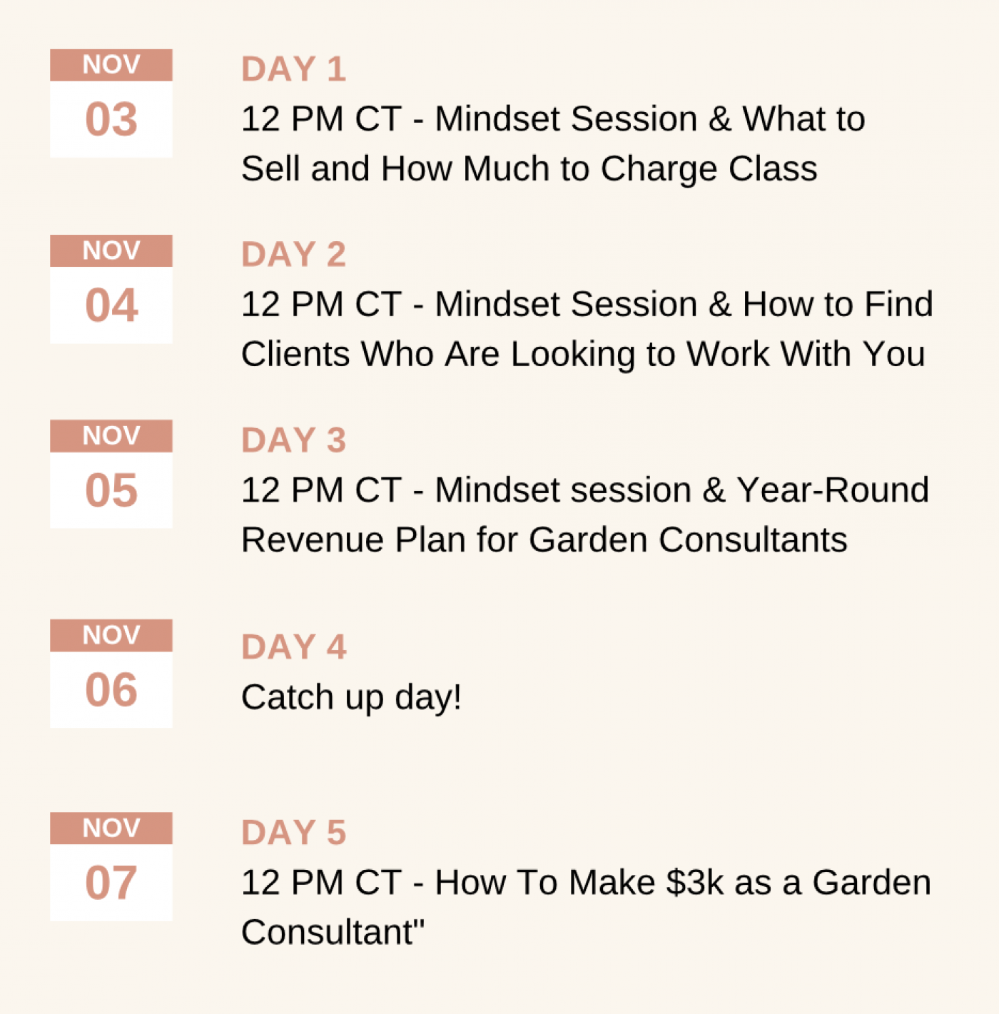 ✓ LIVE Pass to all four classes (November 3-7) + Q&As with Gardenary Founder, Nicole Burke