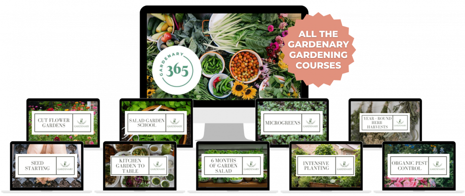 Gardenary 365 is an online membership that gives you front row access to professional gardening courses, ebooks, and garden coaching so that you always know exactly what to do in the garden this year from starting seeds indoors to growing herbs, salad greens and even building a new raised bed kitchen garden.