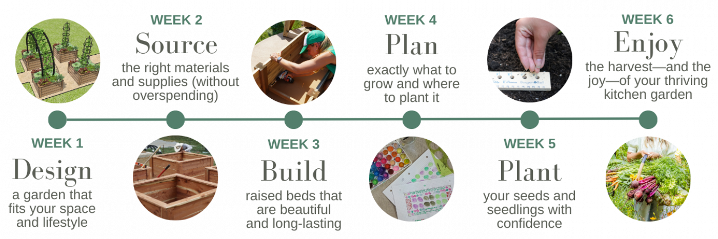 Step-by-step video lessons that walk you through building, planting, and harvesting your very own kitchen garden