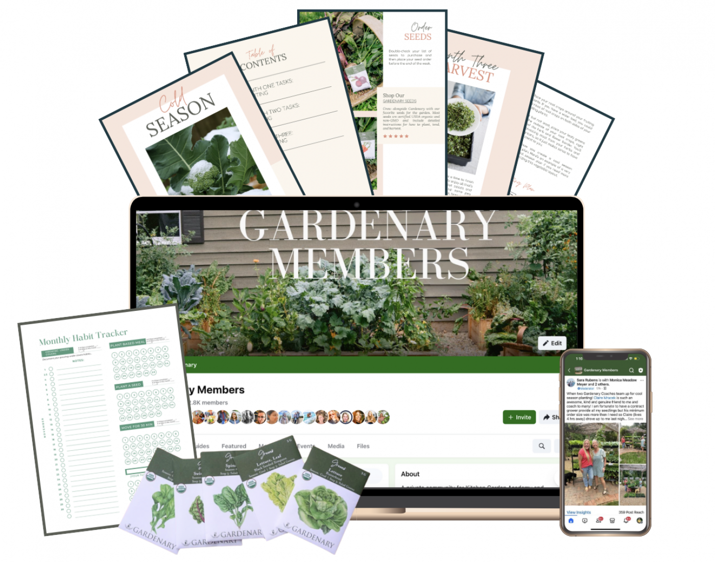 Join Gardenary 365, and get instant access to 11+ expert gardening courses, seasonal guides and checklists for the garden, access to regional Gardenary garden coaches, an exclusive community, and free seeds delivered to you when you join!